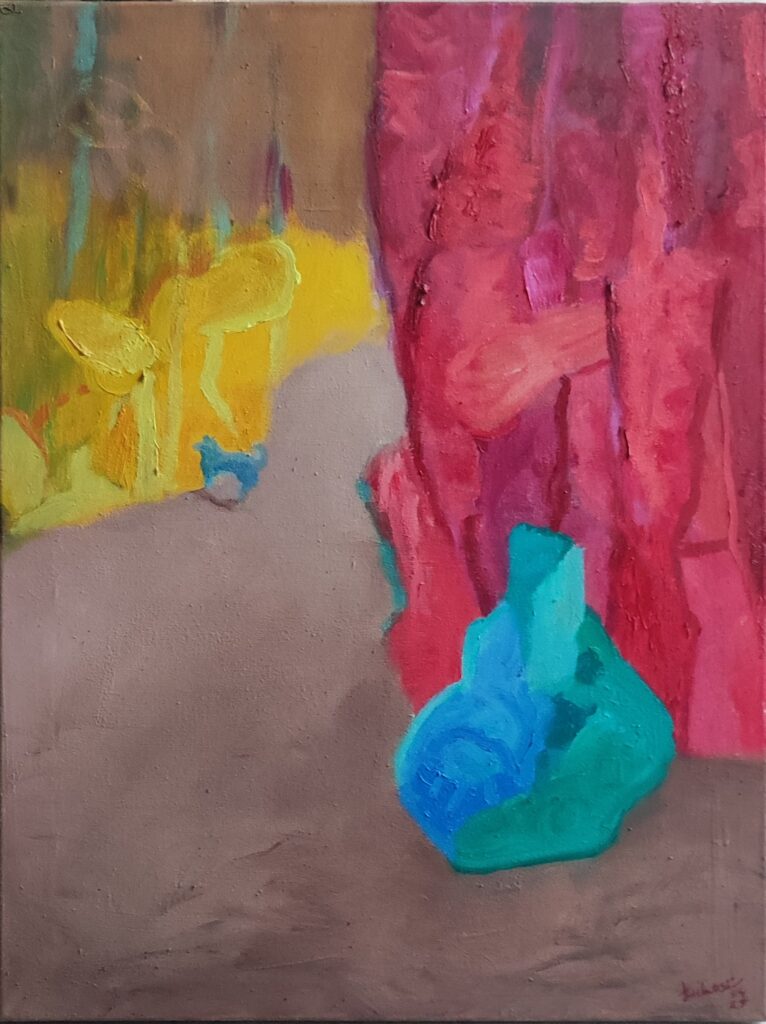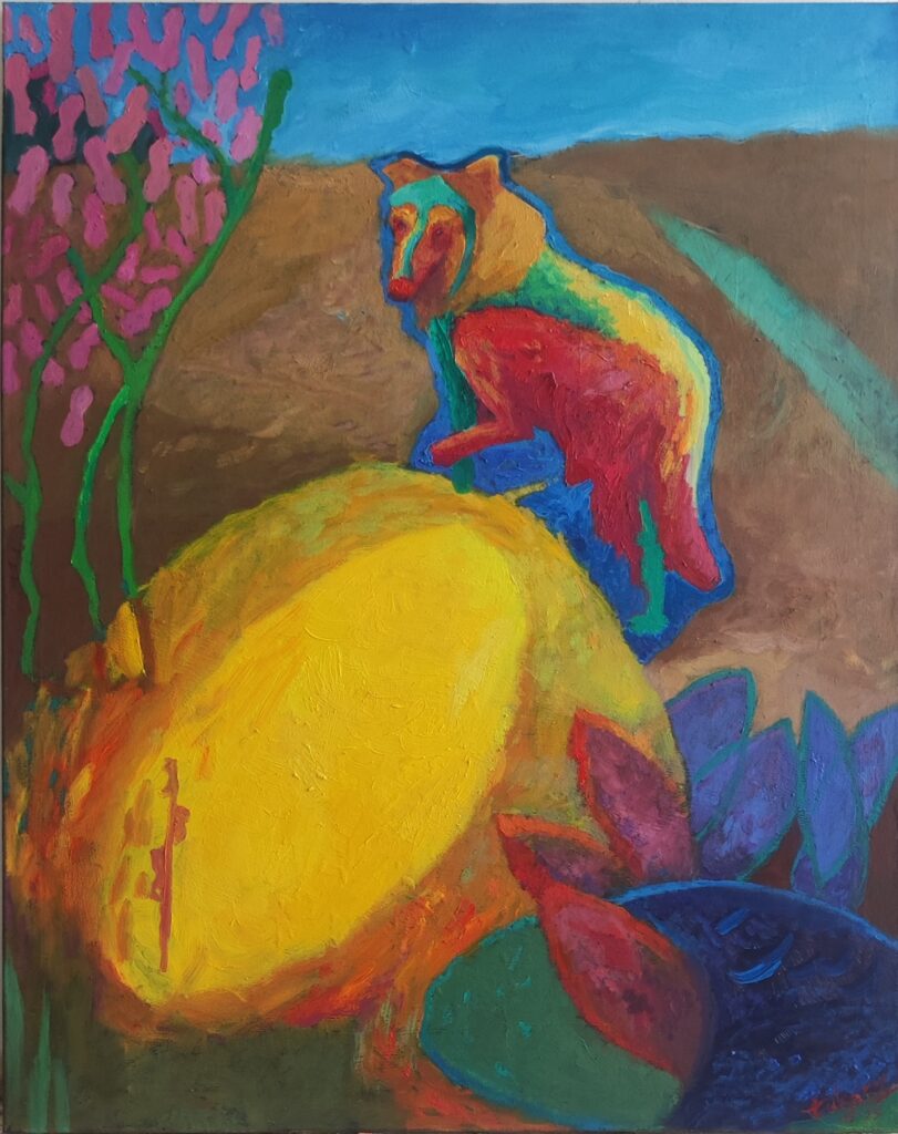 Żółty śpiew / Yellow song, 78x52 cm. Oil on cotton, 2024.