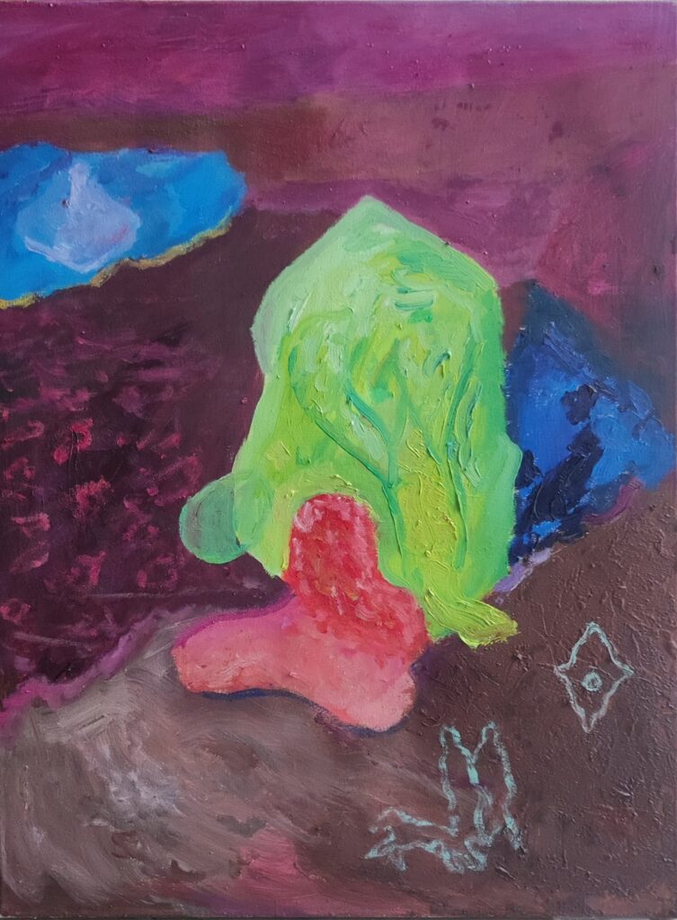 Zasoby / Assets, 70x75 cm. Oil on cotton, 2024.
