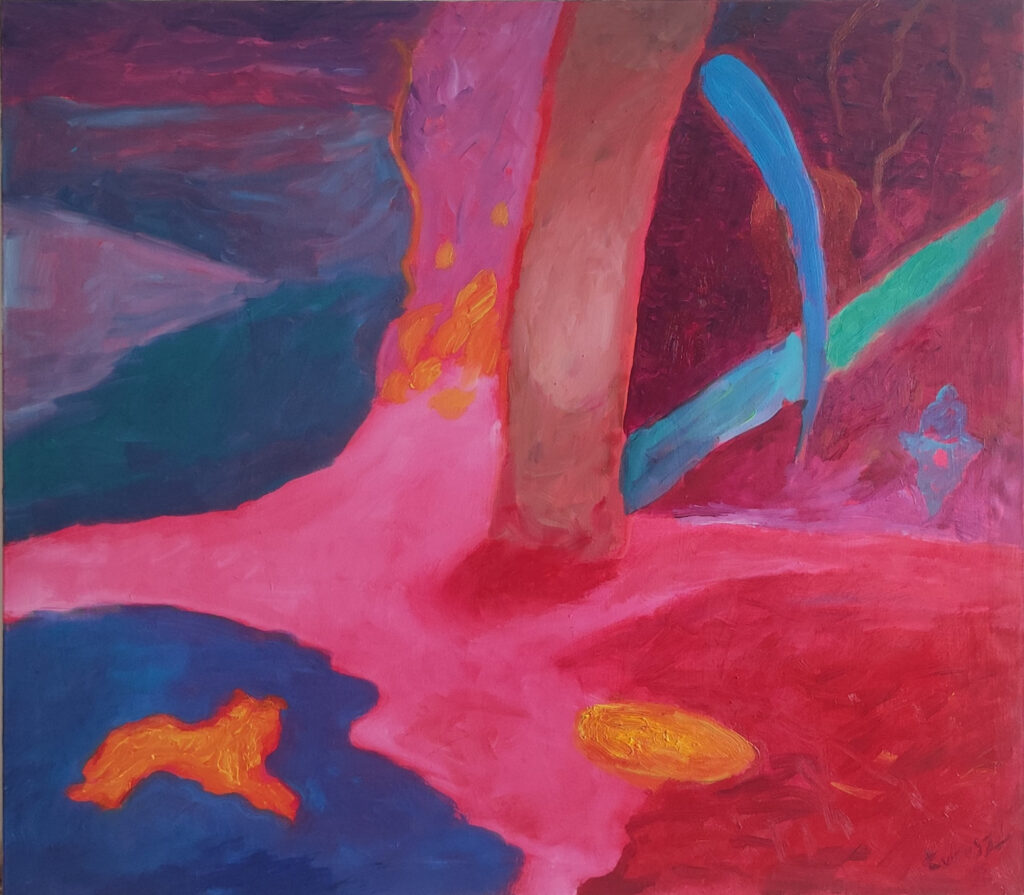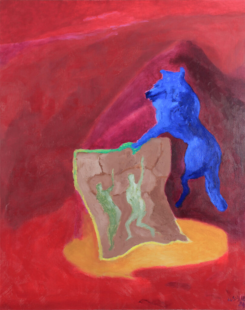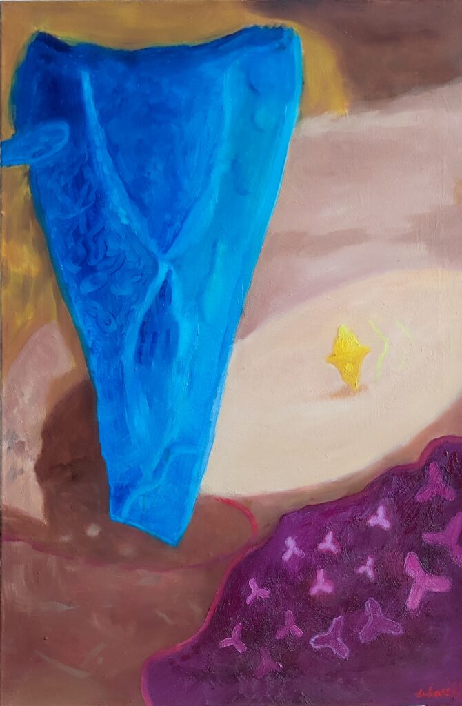 Ogień błękit / Fire blue, 78x98 cm. Oil on cotton, 2024.